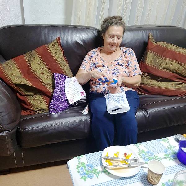 I taught her how to work with her new phone and she was quite pleased at being