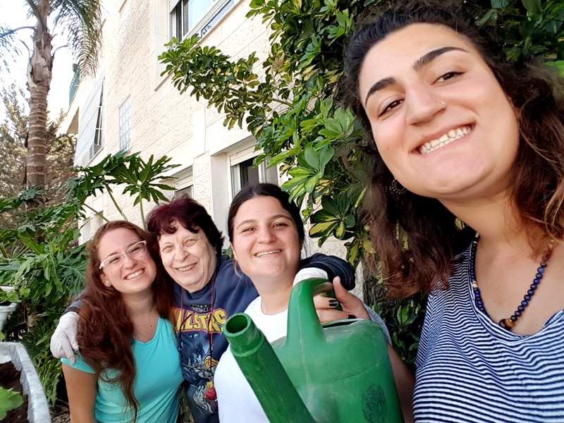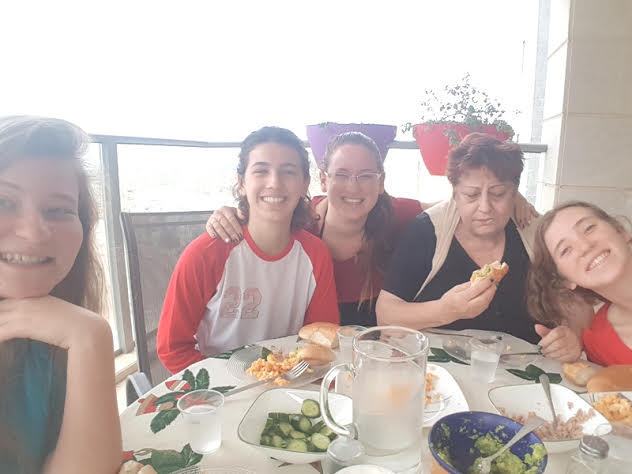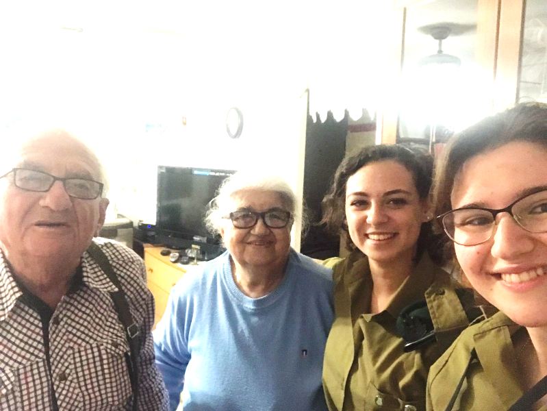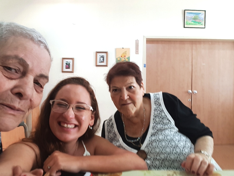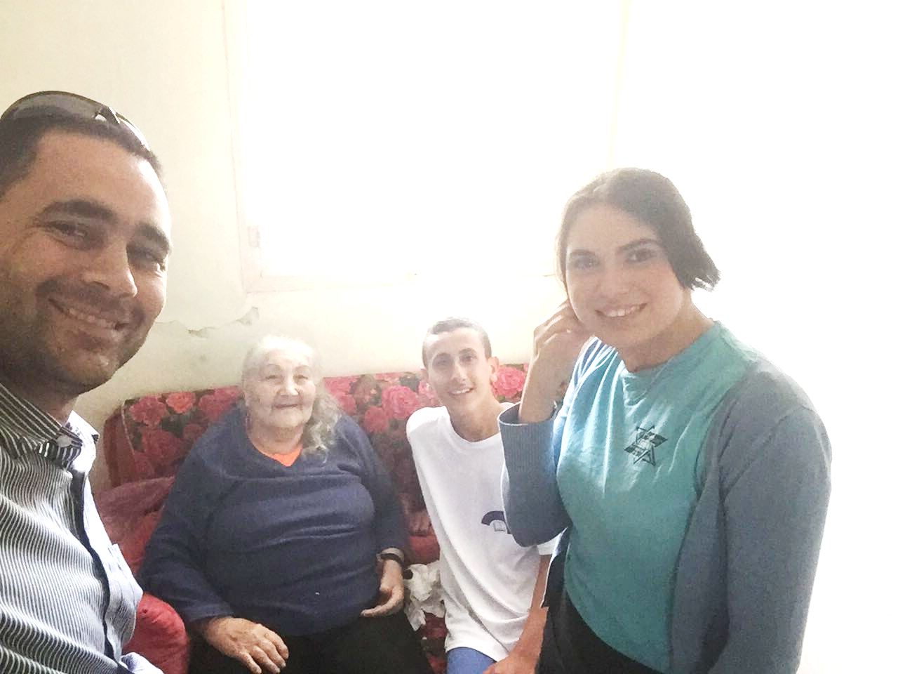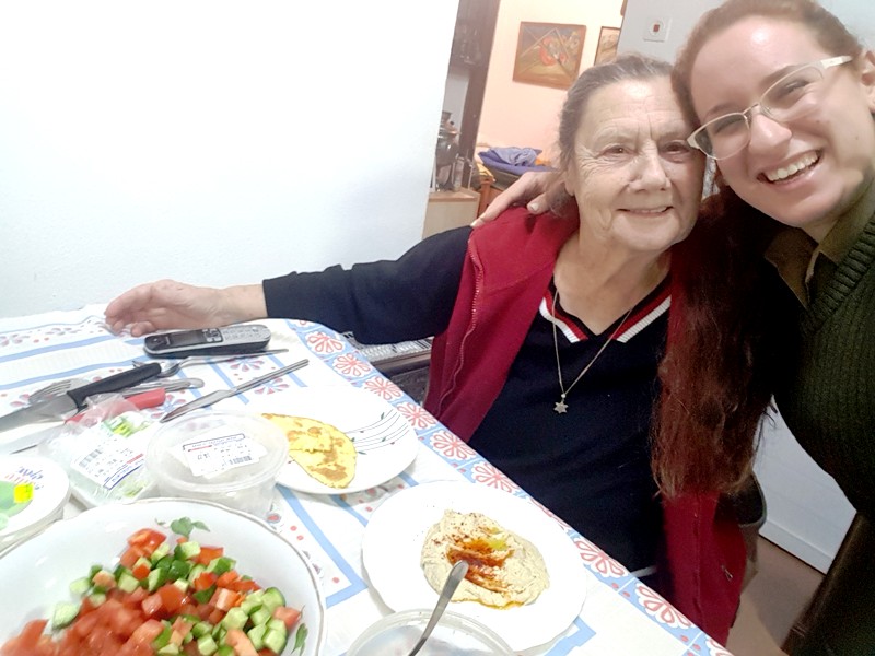 She served us pickles she has made by herself, and we were excited to see a pile of cucumbers on a previous visit which became a huge jar of pickles. Esther shared with us that she went to the beach and showed her bathing suit she wore for 40 years, we were happy for her that she was going out having good time. We continued to talk, telling her our routine at the base, commanders and stress at work. She shared and told us about journeys made during the week and told us about the unfortunate falling she had. We asked her to keep herself safe and to listen to her guts. We talked about the security situation, the families and Eitayi. It was simply amazing and of course we parted with hugs and kisses