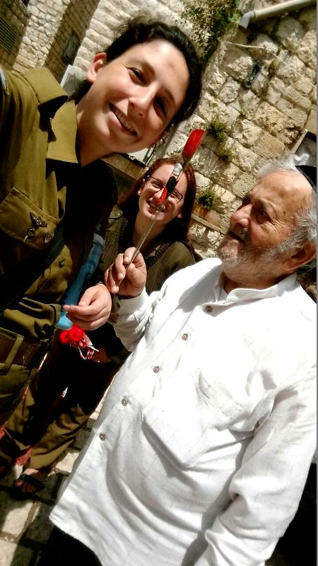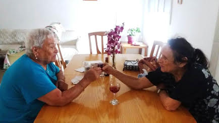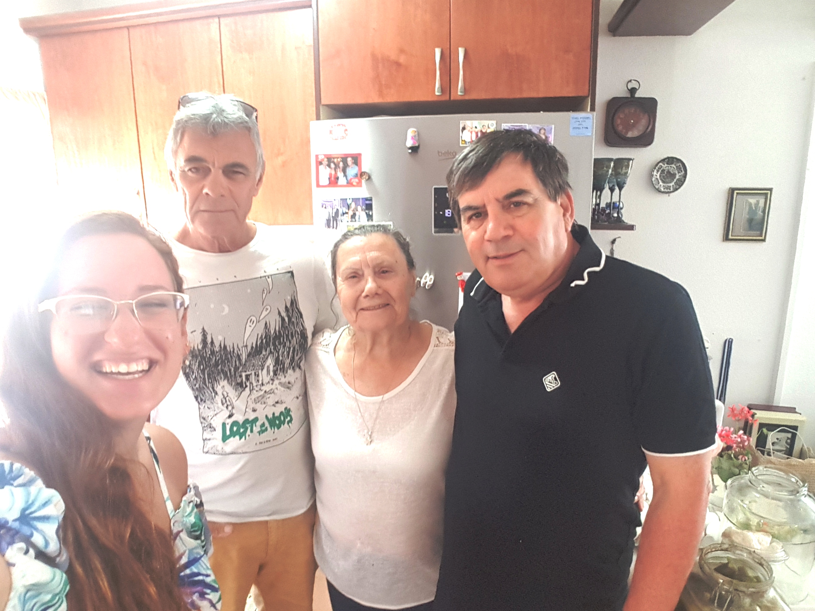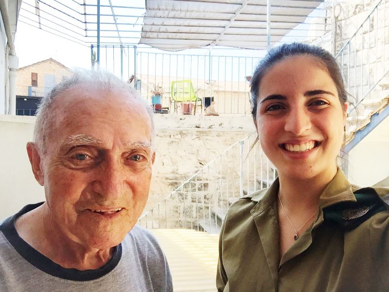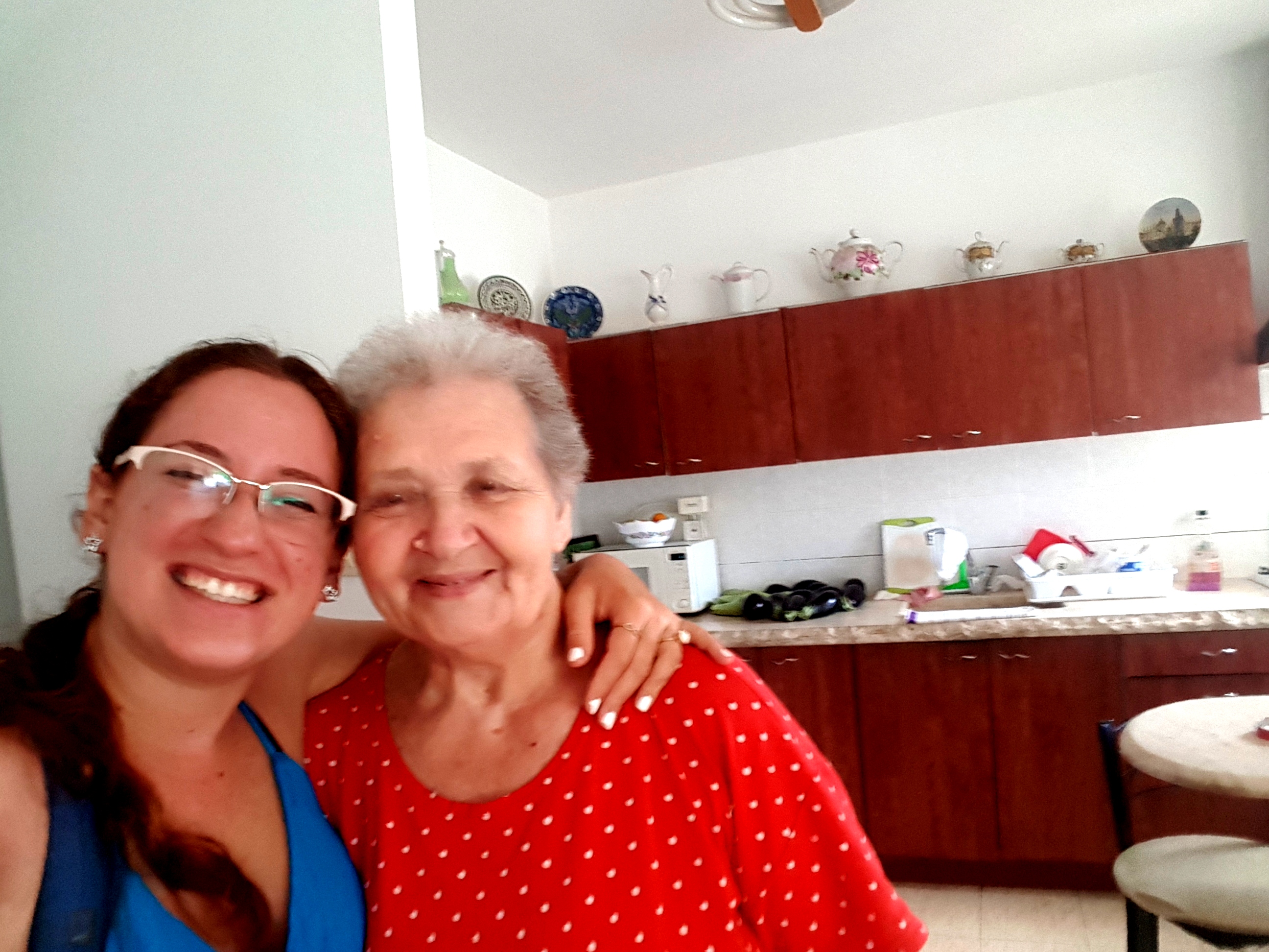 She served us pickles she has made by herself, and we were excited to see a pile of cucumbers on a previous visit which became a huge jar of pickles. Esther shared with us that she went to the beach and showed her bathing suit she wore for 40 years, we were happy for her that she was going out having good time. We continued to talk, telling her our routine at the base, commanders and stress at work. She shared and told us about journeys made during the week and told us about the unfortunate falling she had. We asked her to keep herself safe and to listen to her guts. We talked about the security situation, the families and Eitayi. It was simply amazing and of course we parted with hugs and kisses