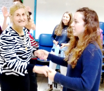 Ruben introduced me to Mika. Mika is a young looking lady, 90 years old. She liked the idea of "Lechaim" with the visits from the students. Mika is not a shoa winner, but a woman with a lot of life experience and a very communicative person, that is able to educate the young students and connect them to the Jewish roots of Eretz Jisrael, like Marit did last year.